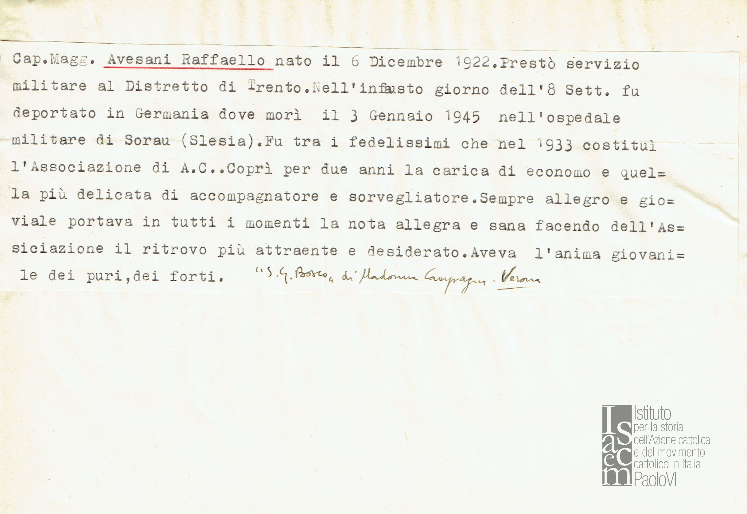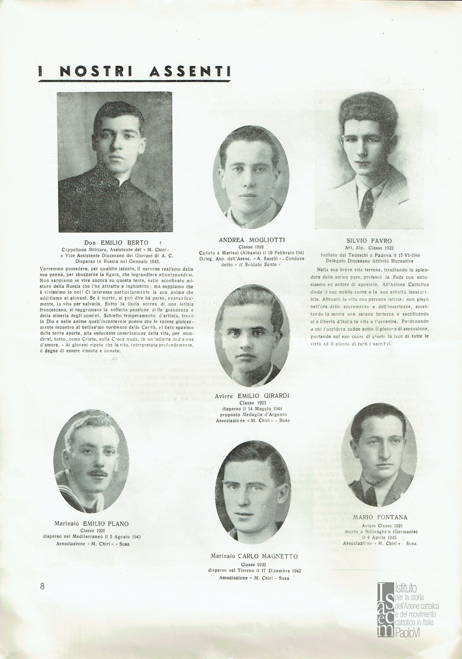 Profilo di Benedetto Maffeis sull'albo di gloria dei caduti dell'Azione cattolica nella Resistenza. Isacem, Righini, b. 26, fasc. 4