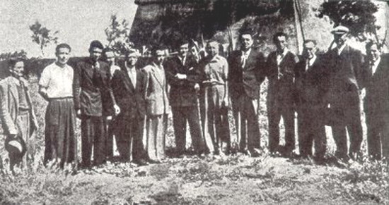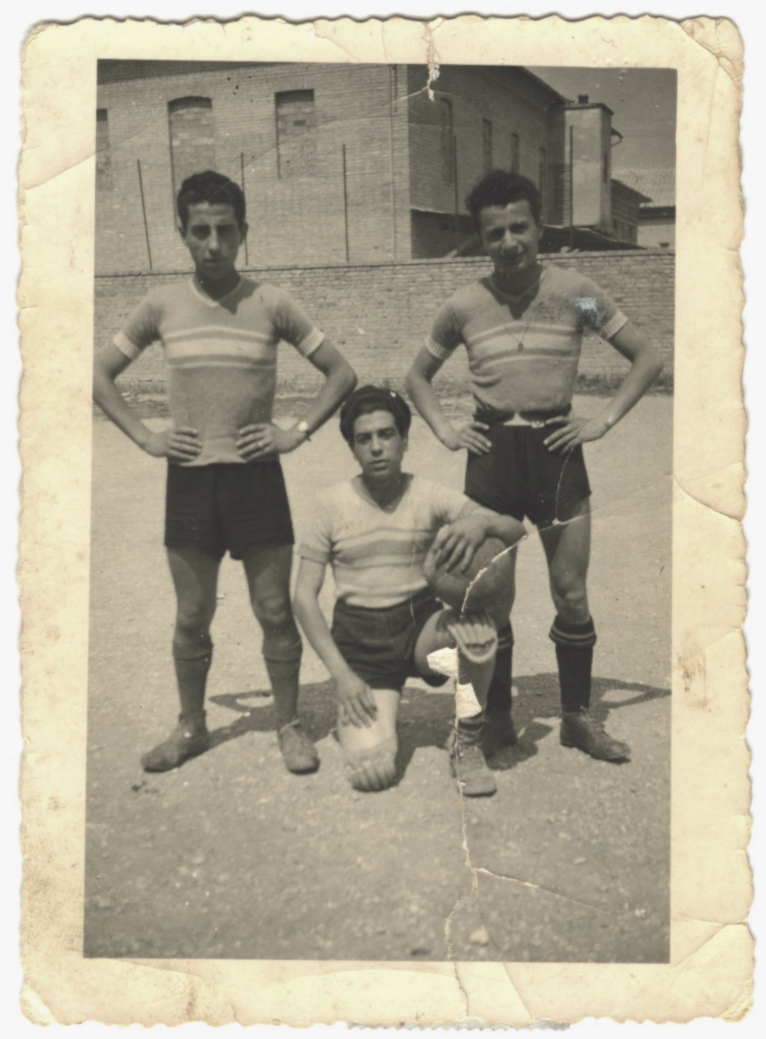 Fotografia di Audio Carassai (primo a sinistra) con gli amici di gioventù. Archivio privato famiglia Carassai