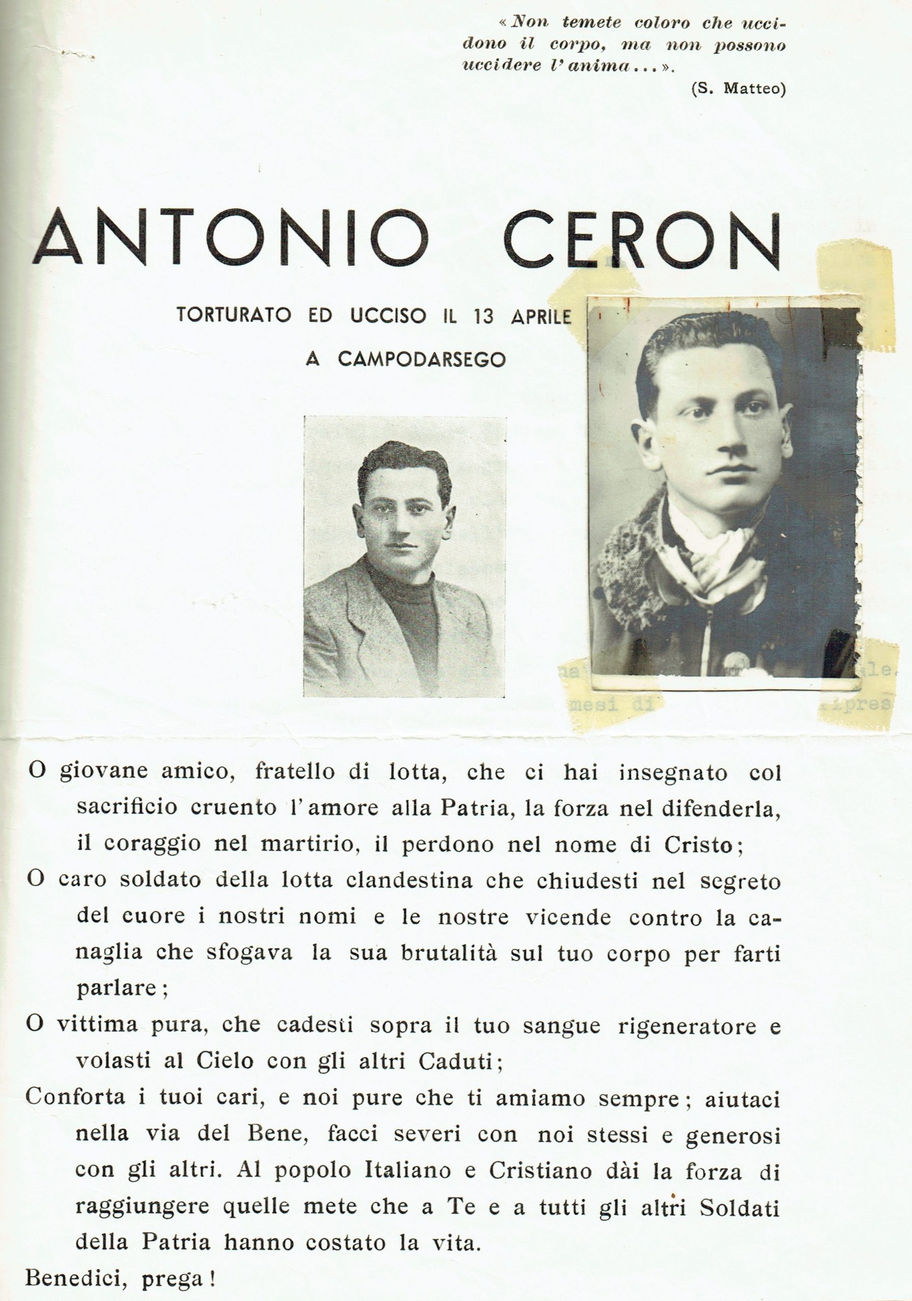 Ricordo funebre di Antonio Ceron. Isacem, Giac, b. 770, fasc. 3