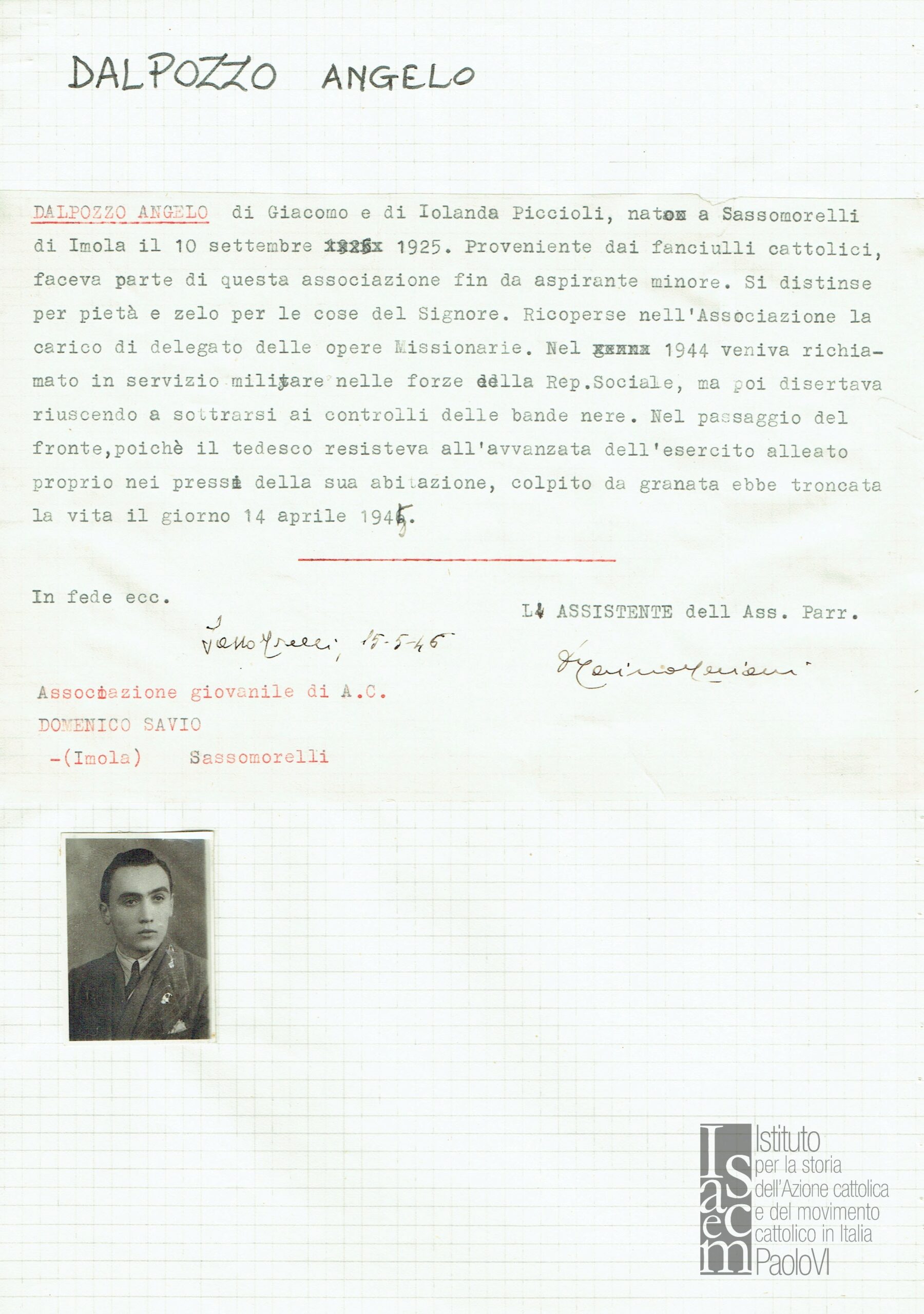 Note biografiche di Angelo Dalpozzo. Isacem, Giac, b. 773, fasc. Daffadà-De Filippis