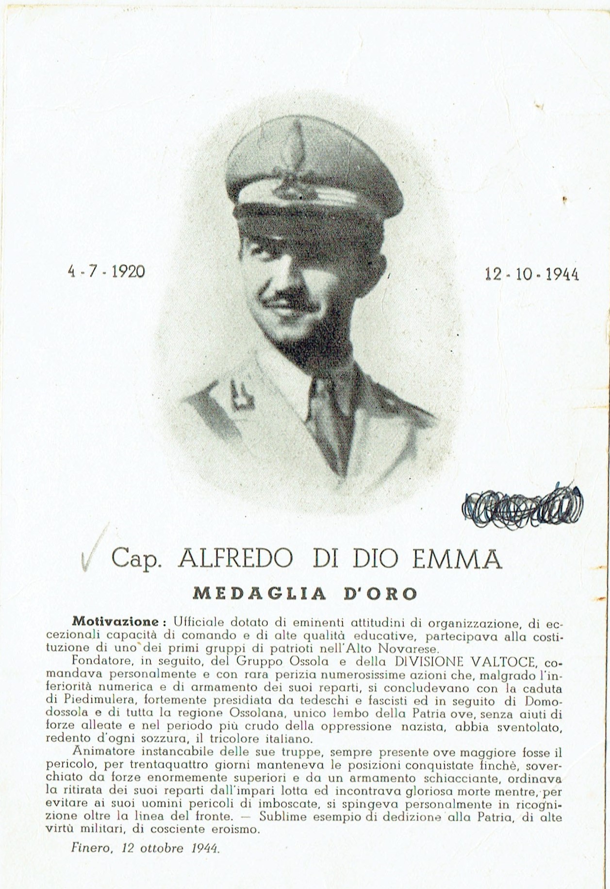 Motivazione medaglia d'oro al valor militare concessa ad Alfredo Di Dio. Isacem, Giac, b. 770, fasc. 4a
