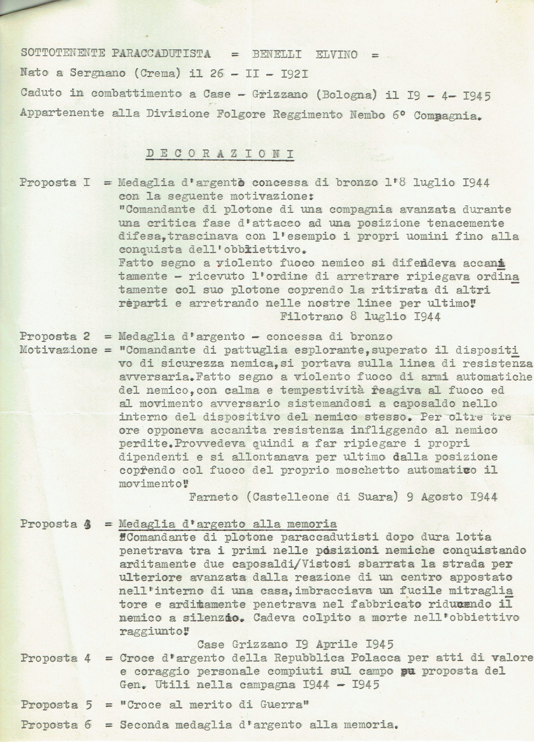 Proposte per la concessione di medaglia al valore a Elvino Benelli. Isacem, Giac, b. 772, fasc. Bascapè-Beotti