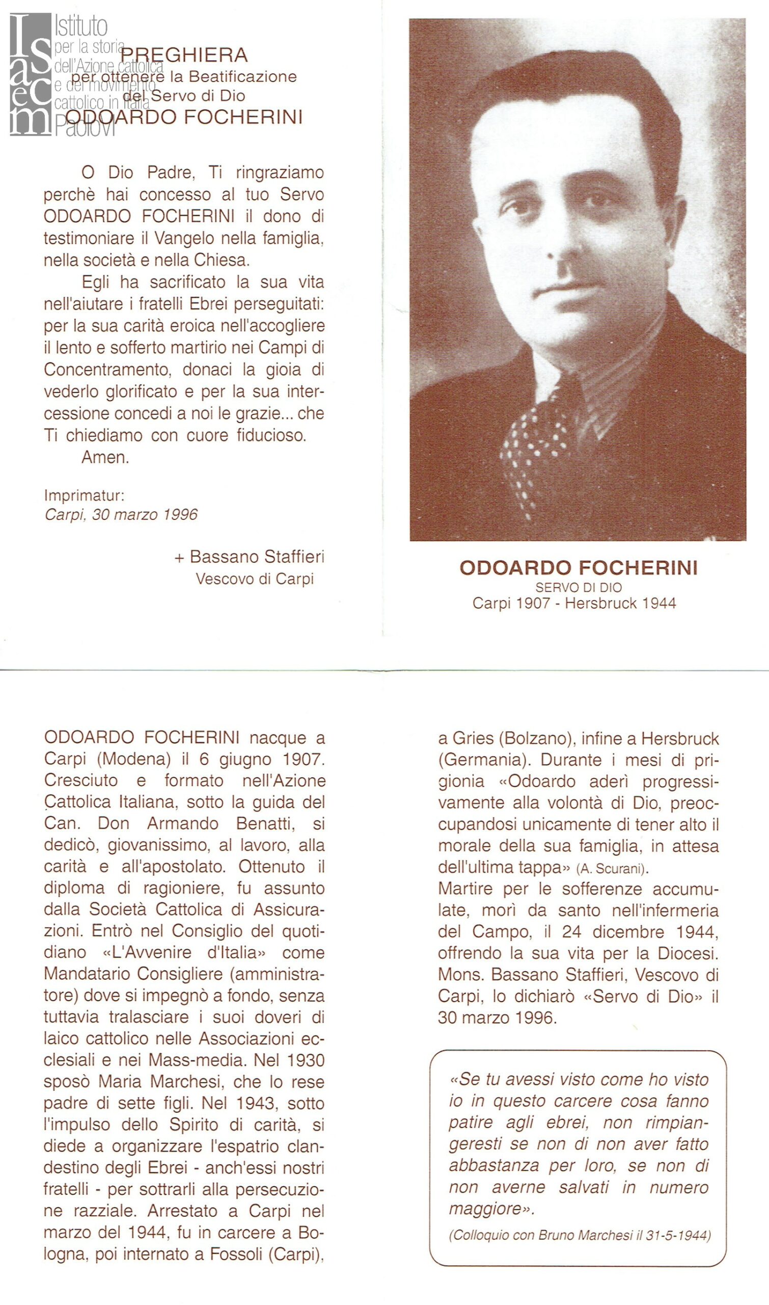 Ricordo funebre di Odoardo Focherini. Isacem, Righini, Biografie, b. 11, fasc. Focherini Odoardo.
