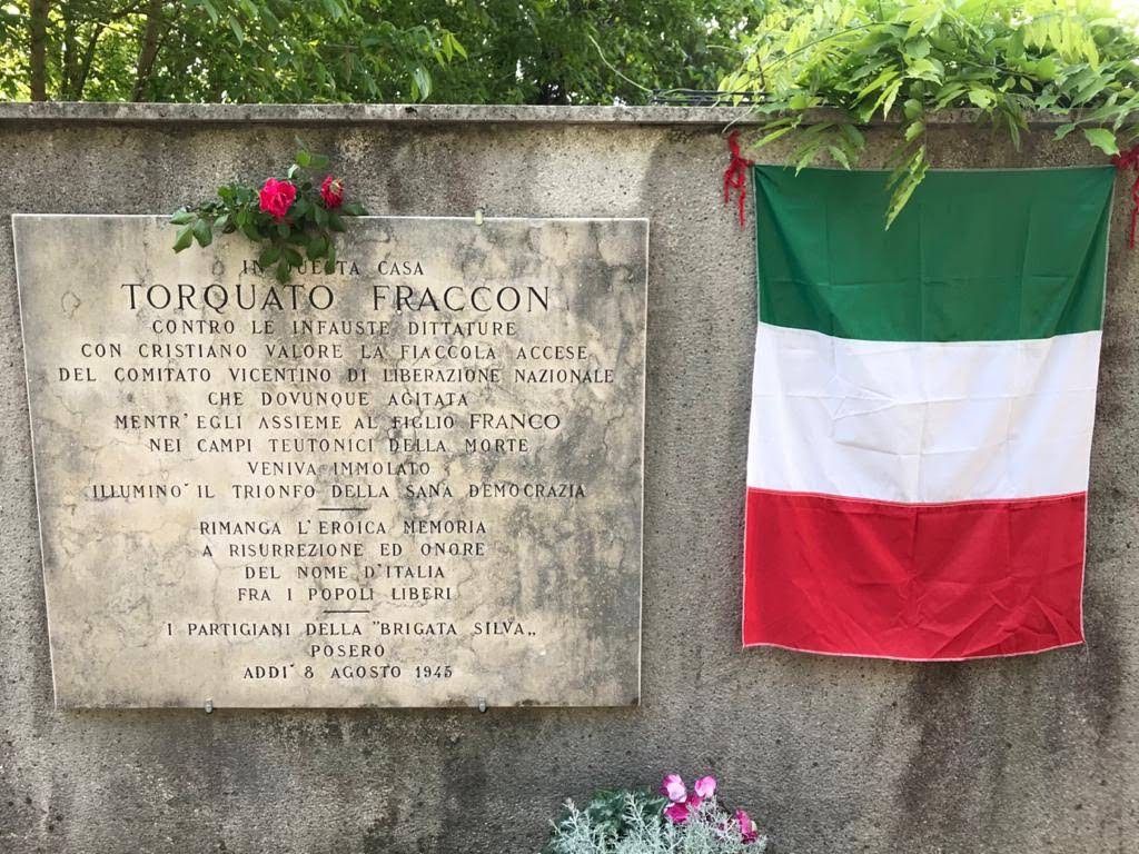 Lapide commemorativa posta sulle mura esterne della residenza dei Fraccon di via Commenda a Vicenza. Archivio famiglia Fraccon
