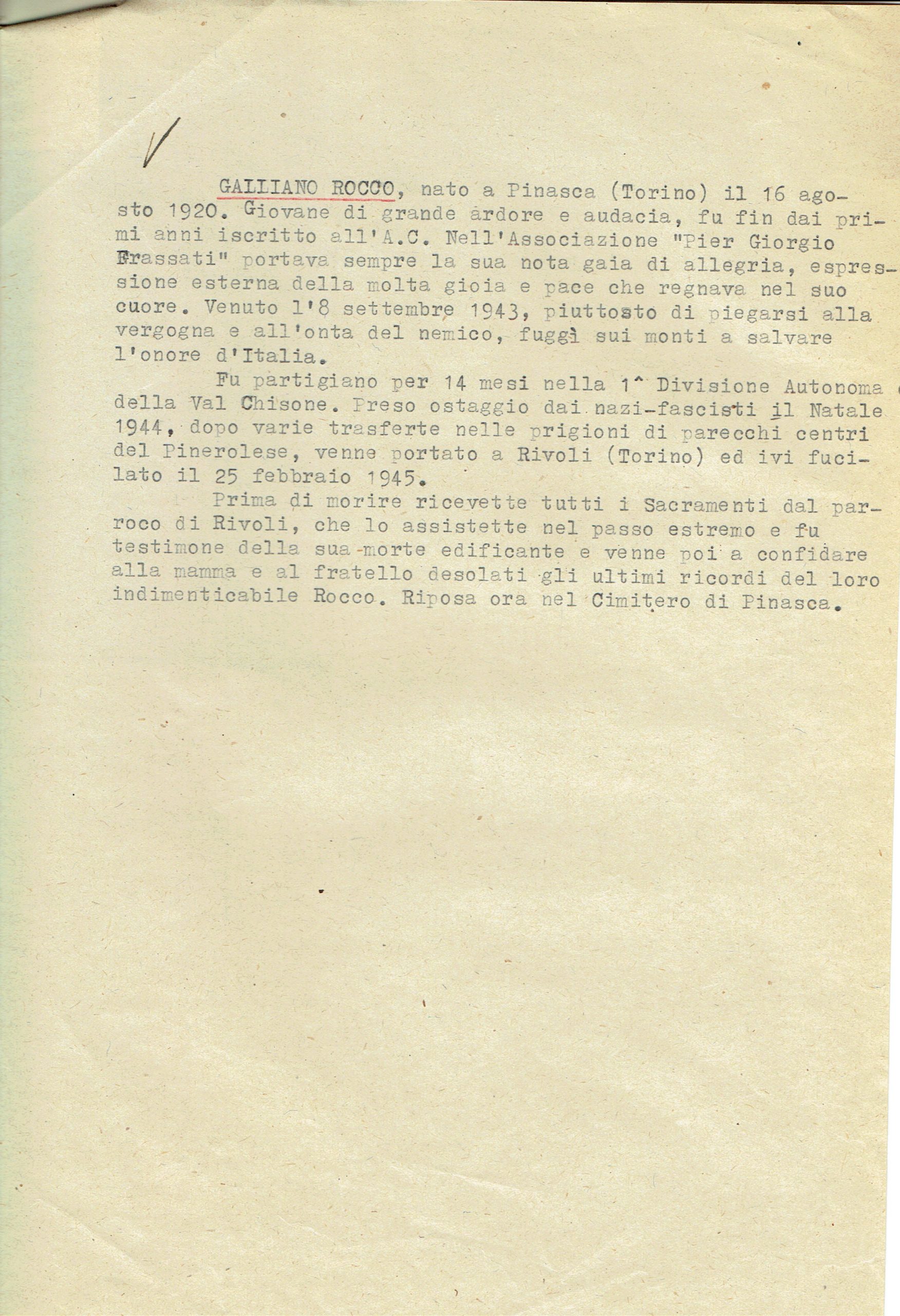 Note biografiche di Rocco Galliano. Isacem, Giac, b. 773, fasc. Gabana-Gazzurelli