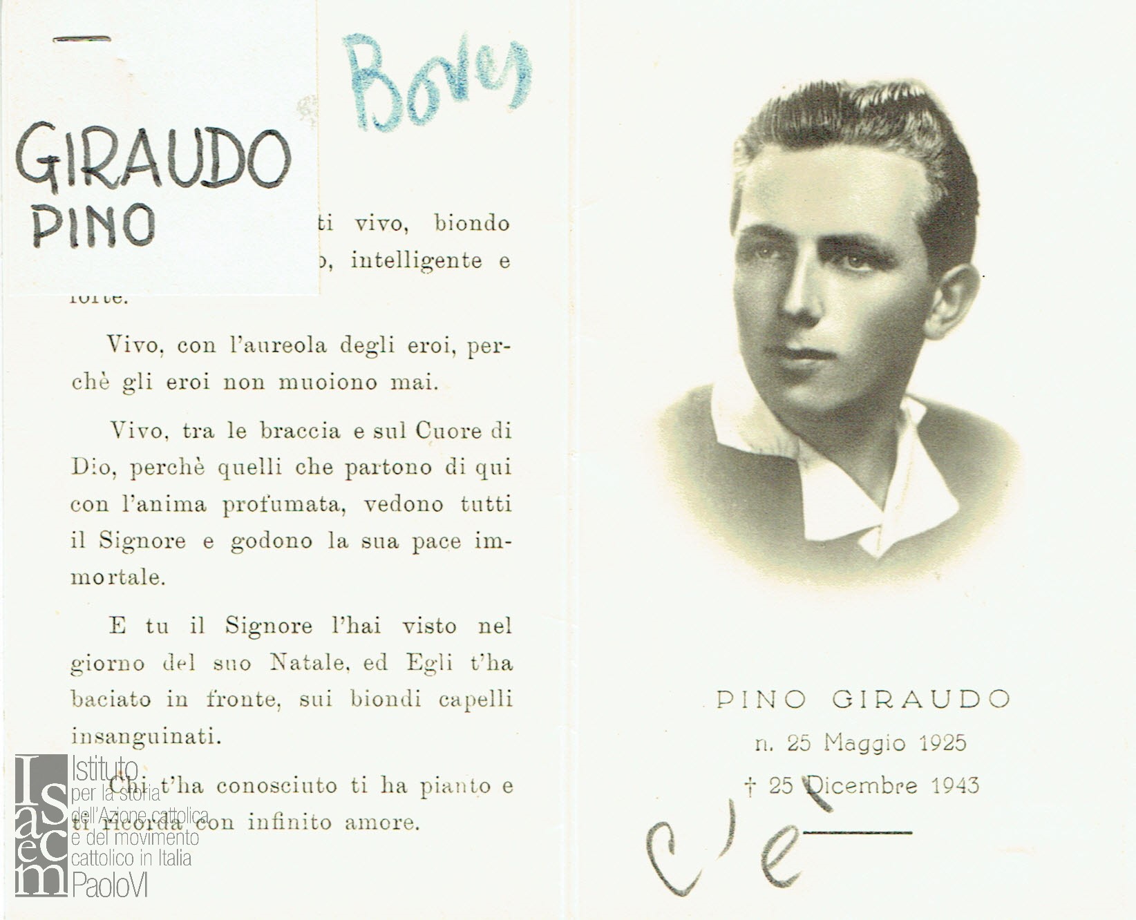Ricordo funebre di Giuseppe Giraudo. Isacem, Giac, b. 774, fasc. Gedda-Gizzi