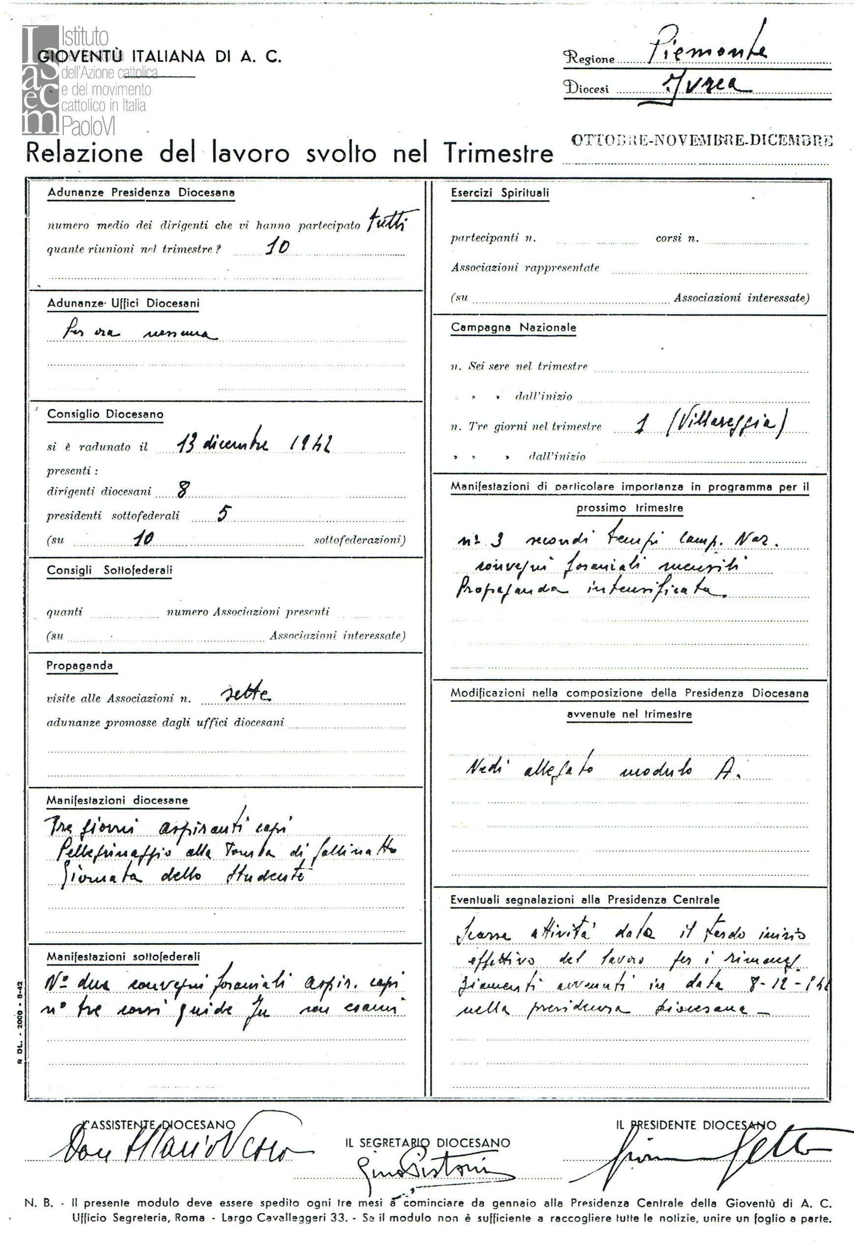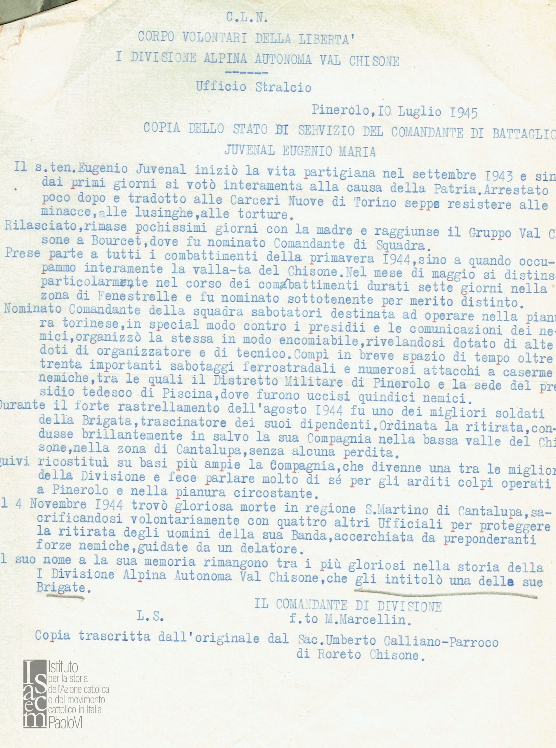 Relazione della Giac di Ivrea firmata da Pistoni. Isacem, Righini, Biografie, b. 19, fasc. Pistoni Gino.