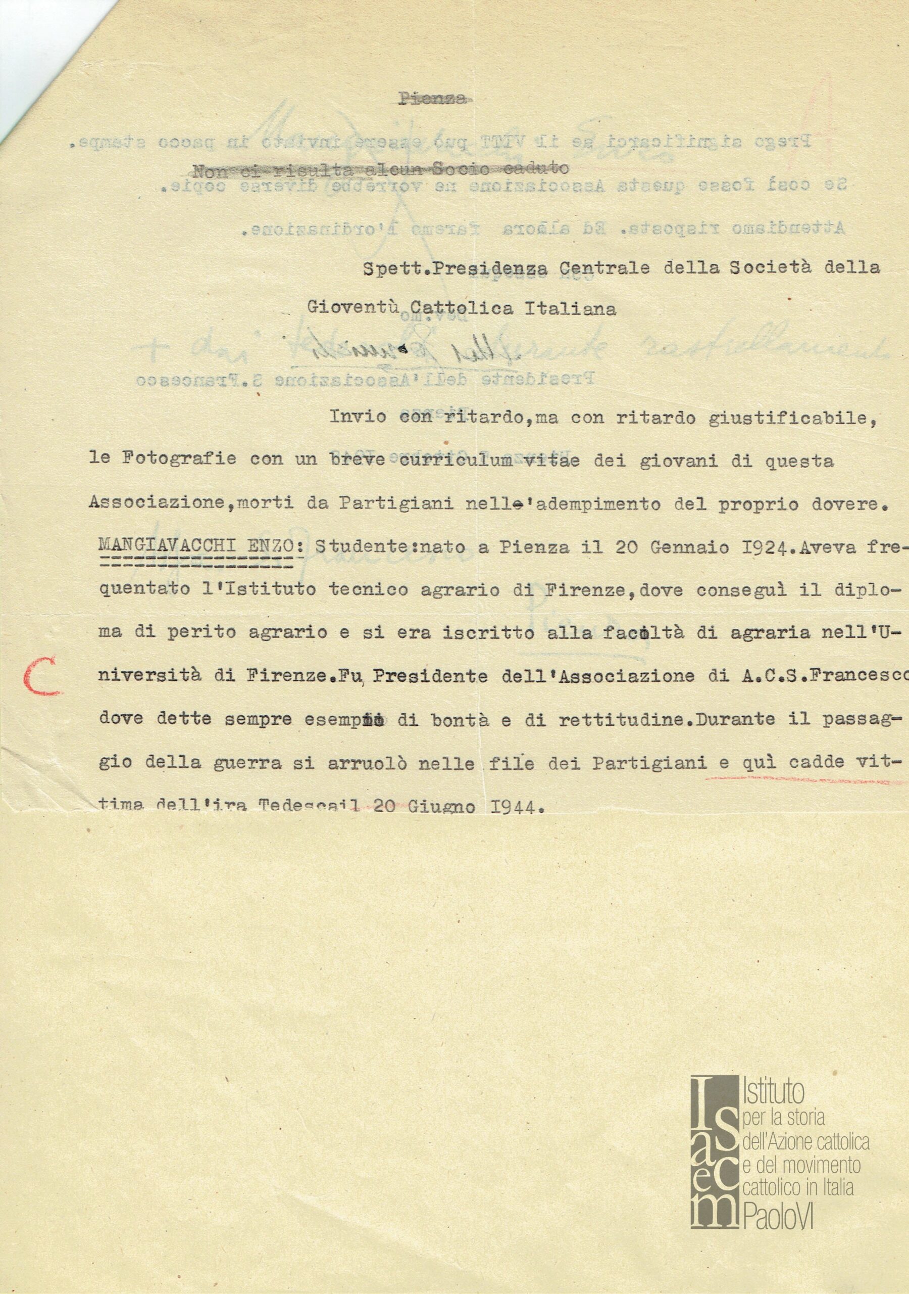 Note biografiche di Enzo Mangiavacchi, in Isacem, Giac, b. 774, fasc. Maccari-Marchesani
