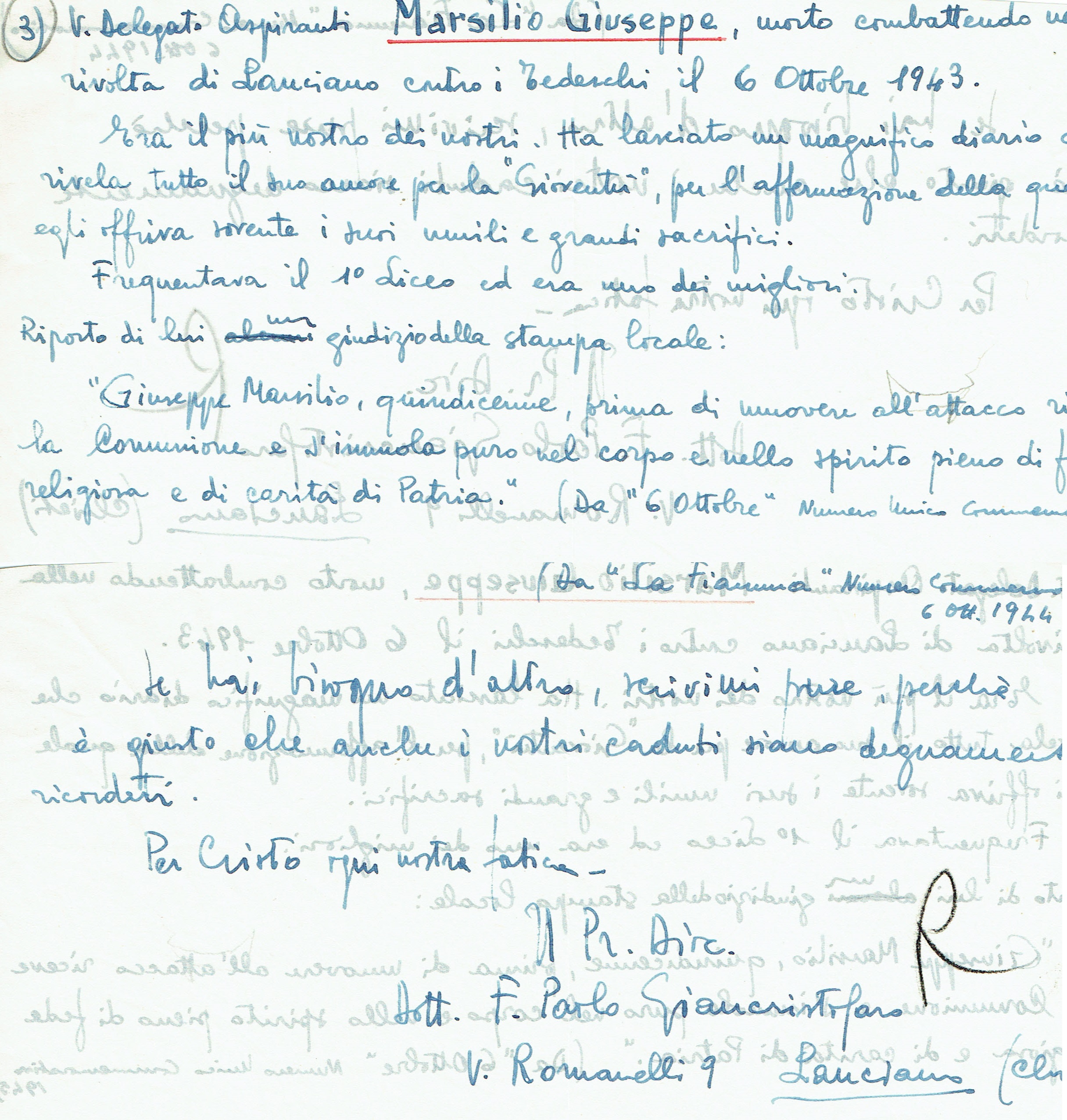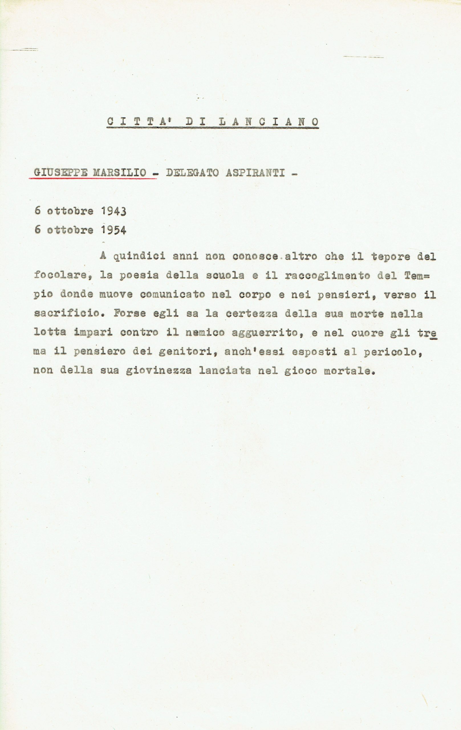Ricordo nell'anniversario della morte di Giuseppe Marsilio. Isacem, Giac, b. 774, fasc. Marchese-Marzani
