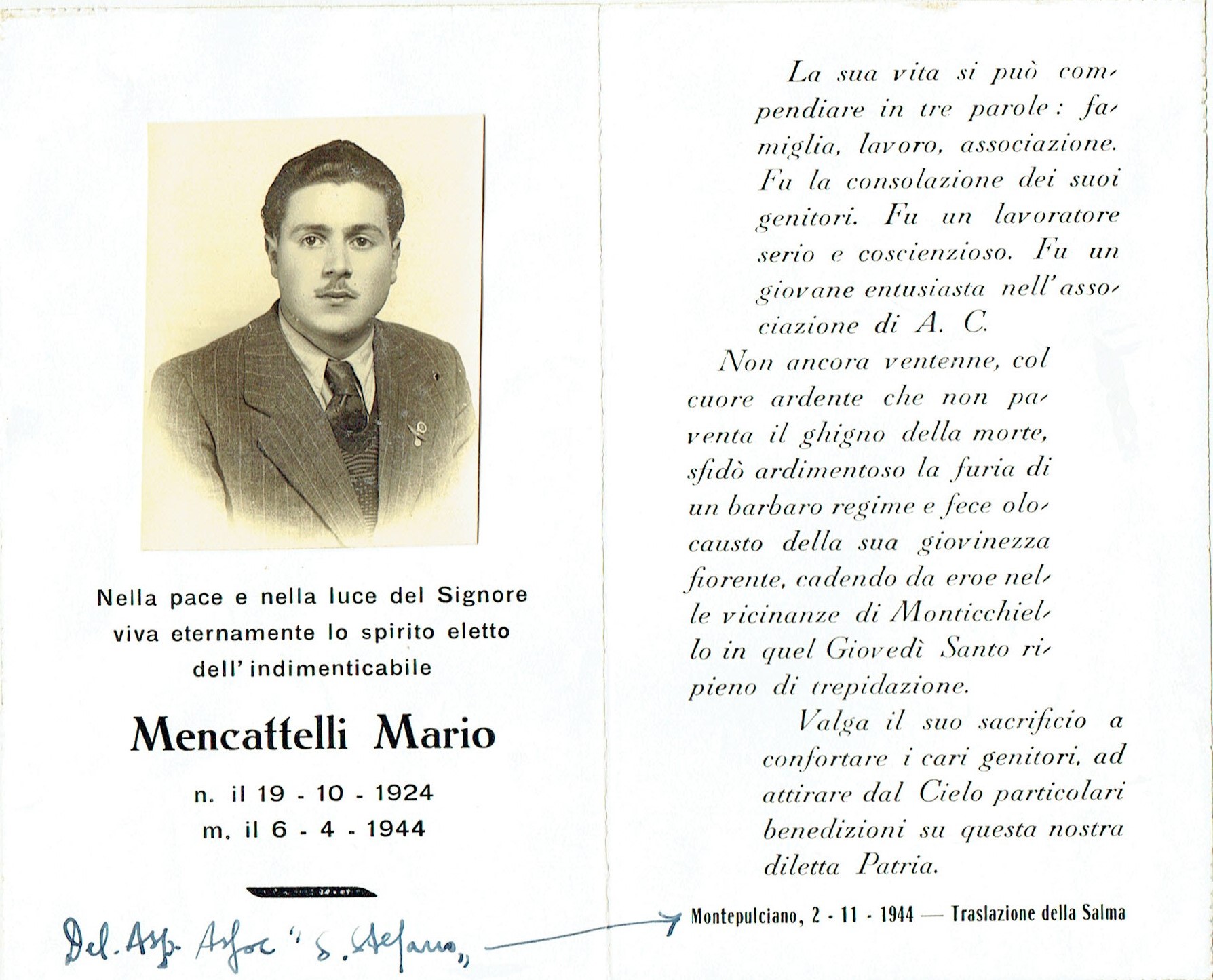 Ricordo funebre di Mario Mencatelli. Isacem, Giac, b. 770, fasc. 4a