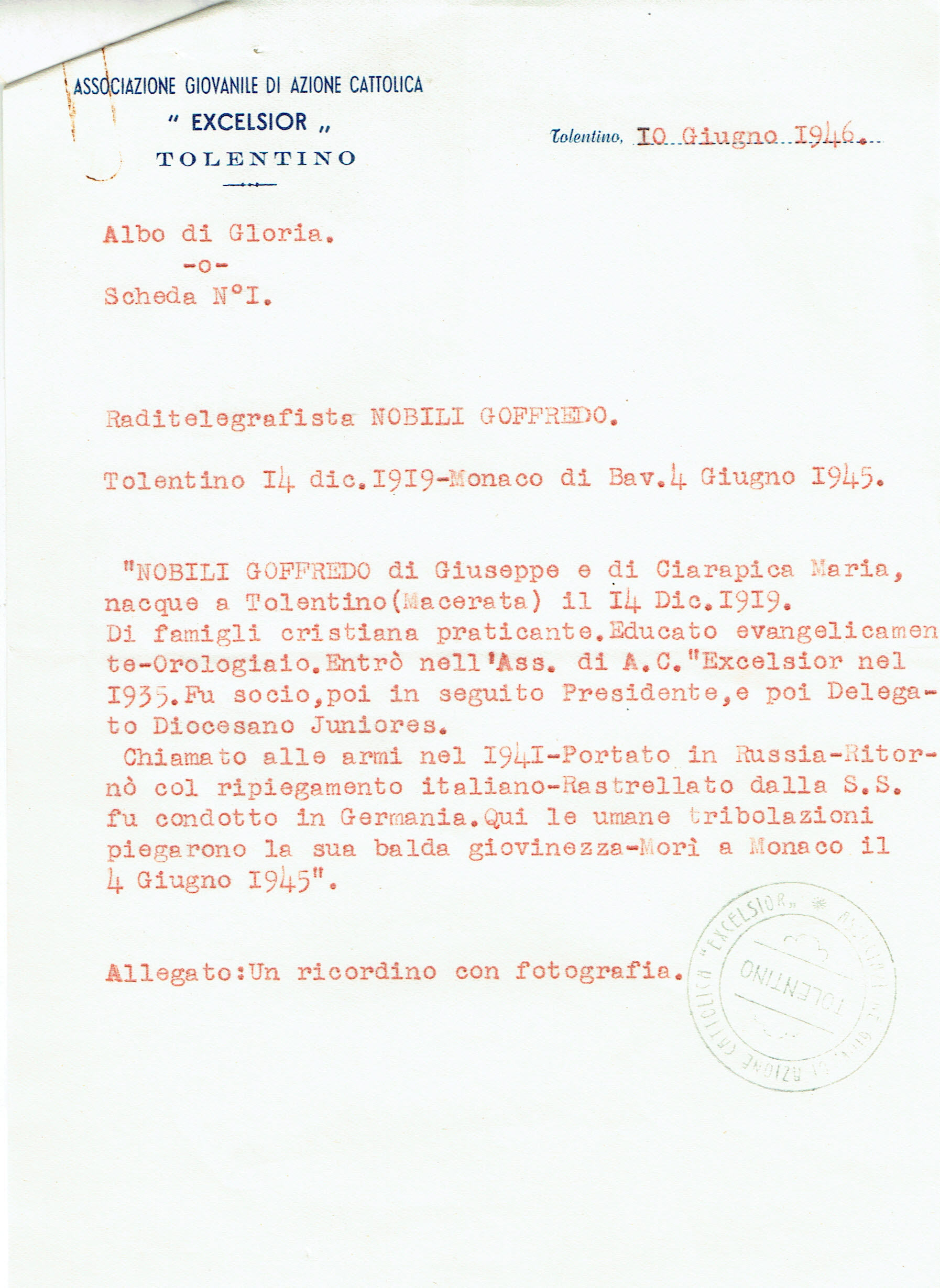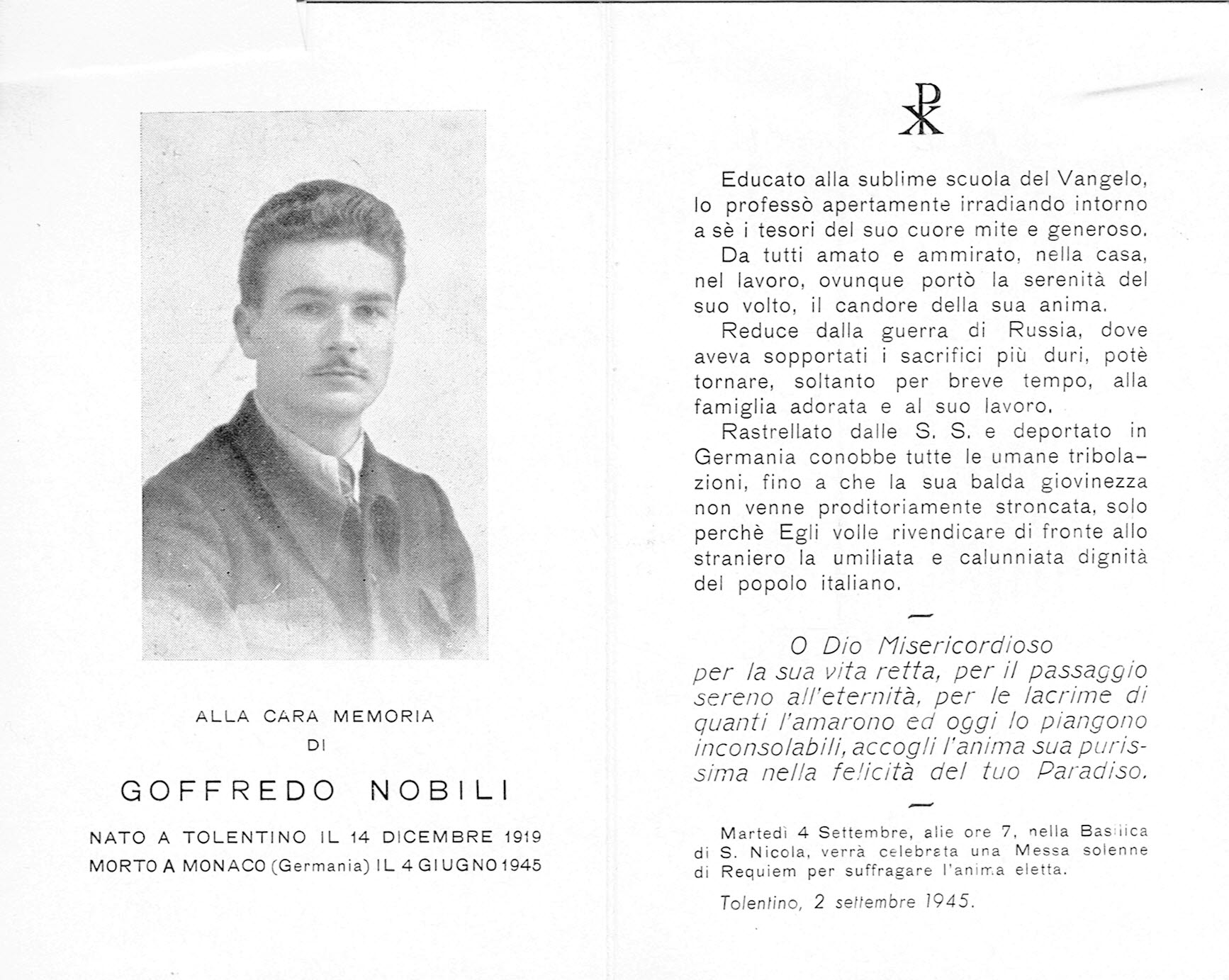 Ricordo funebre di Goffredo Nobili. Isacem, Giac, b. 775, fasc. Nannino-Nuti