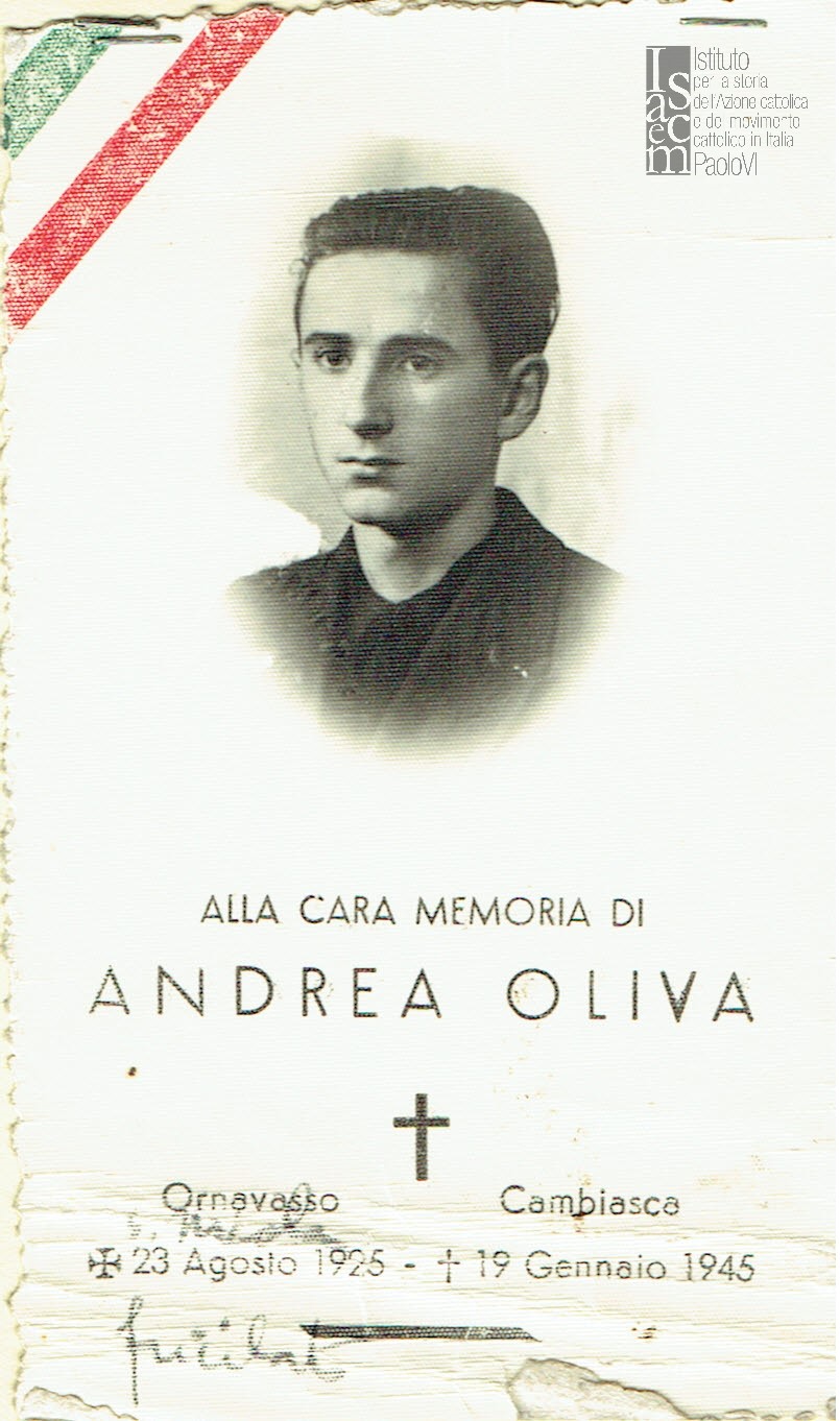 Ricordo funebre di Andrea Oliva. Isacem, Giac, b. 775, fasc. Odinolfi-Ottone