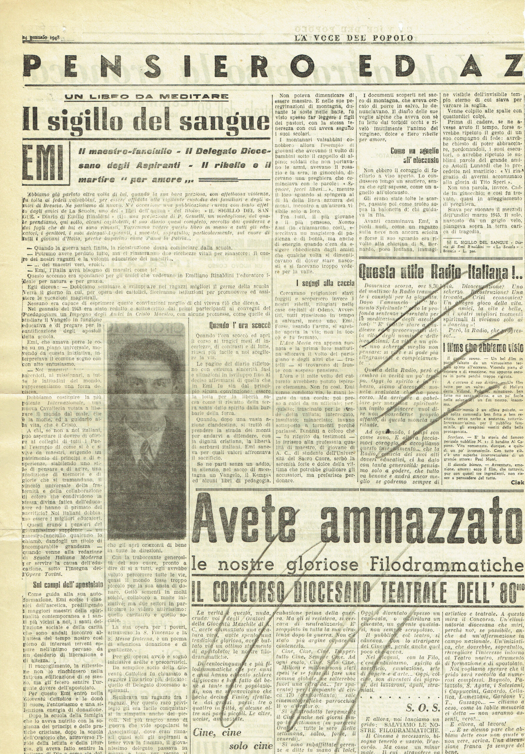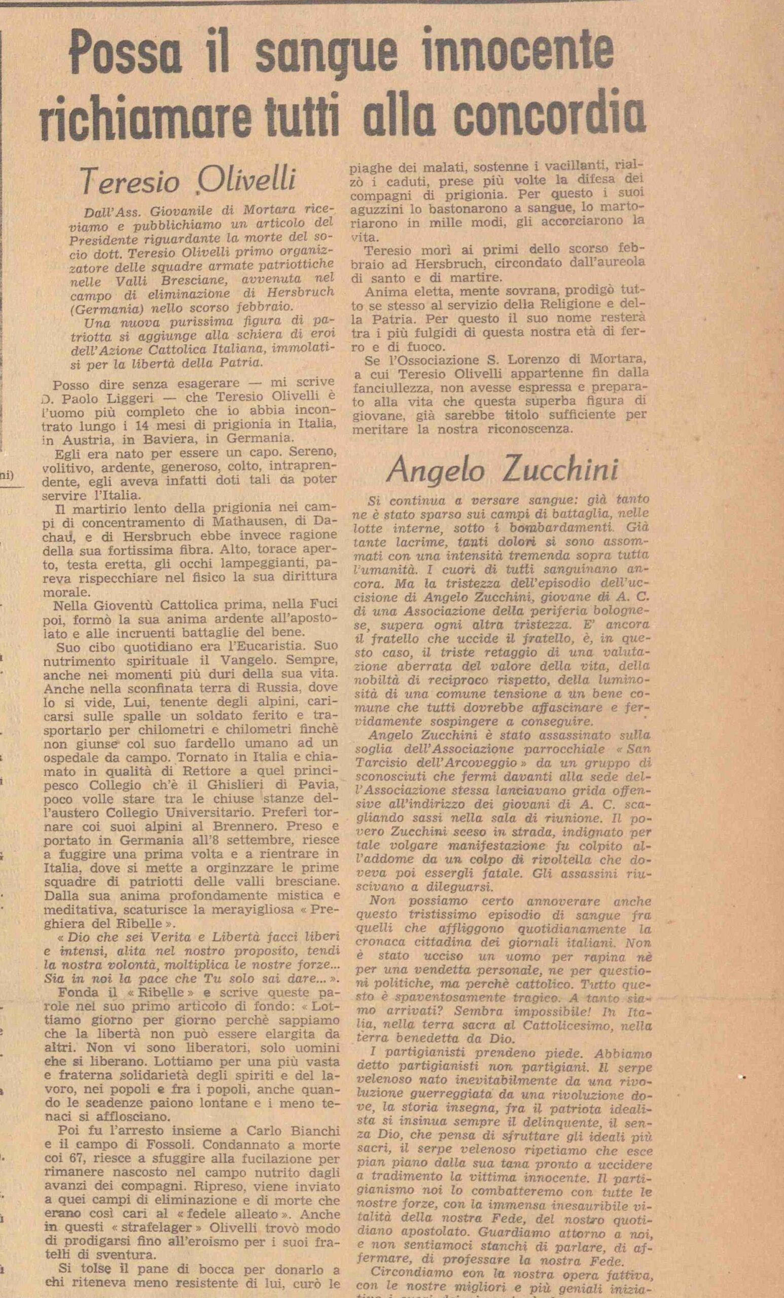 Possa il sangue innocente richiamare tutti alla concordia. Teresio Olivelli, in «Gioventù Nova», 23 (1945), 17