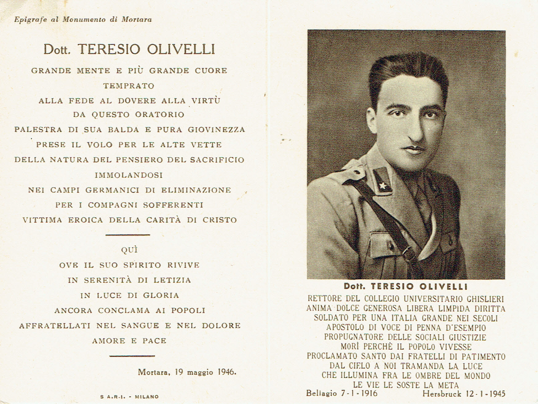 Ricordo funebre di Teresio Olivelli. Isacem, Giac, b. 775, fasc. Odinolfi-Ottone
