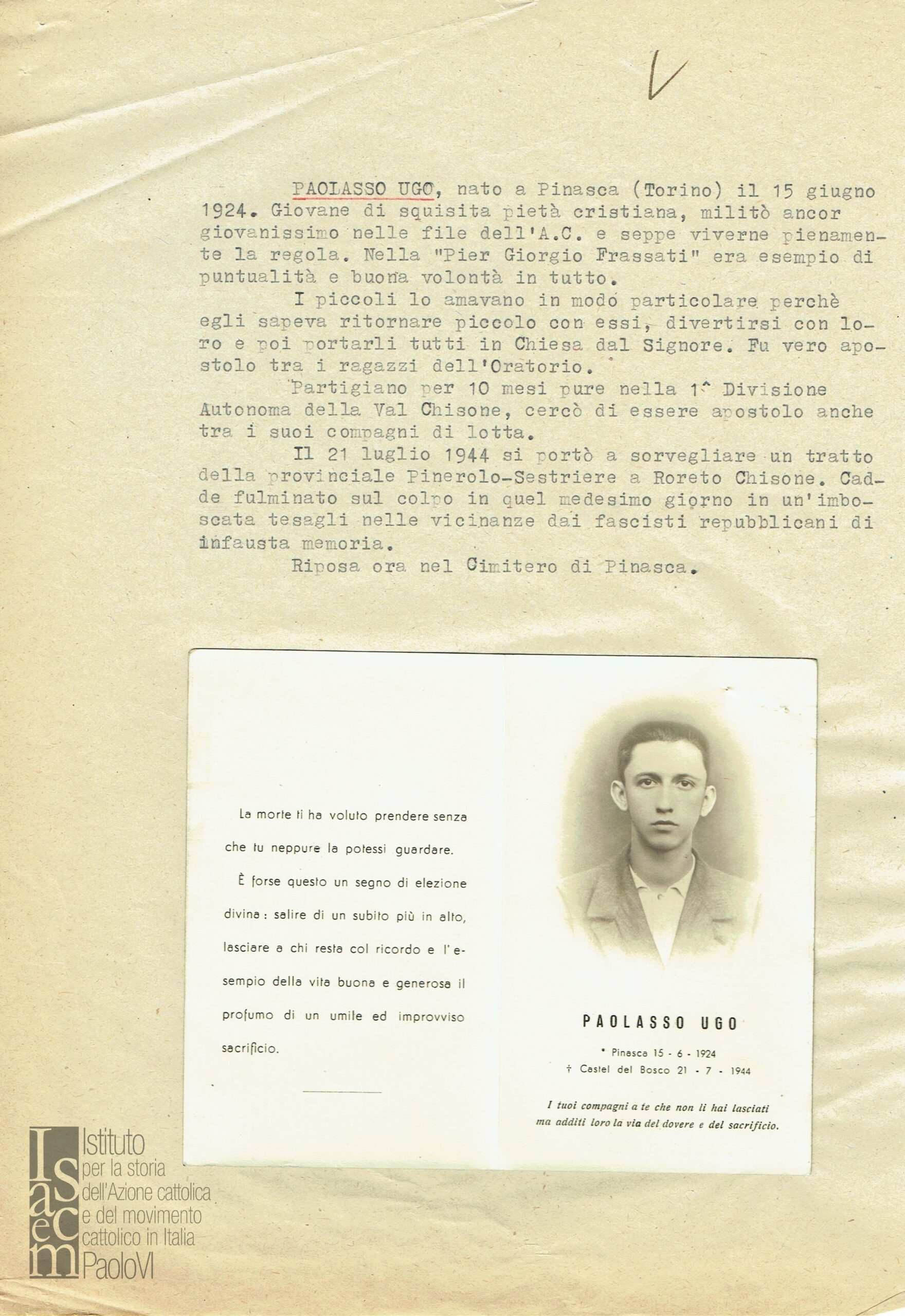 Scheda biografica di Ugo Paolasso per l'albo di gloria della Giac. Isacem, Giac, b. 775, fasc. Pacato-Papurello