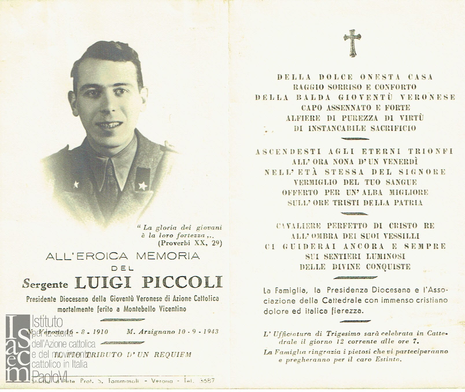 Ricordo funebre di Luigi Piccoli. Isacem, Giac, b. 775, fasc. Piacentini-Pizzoni