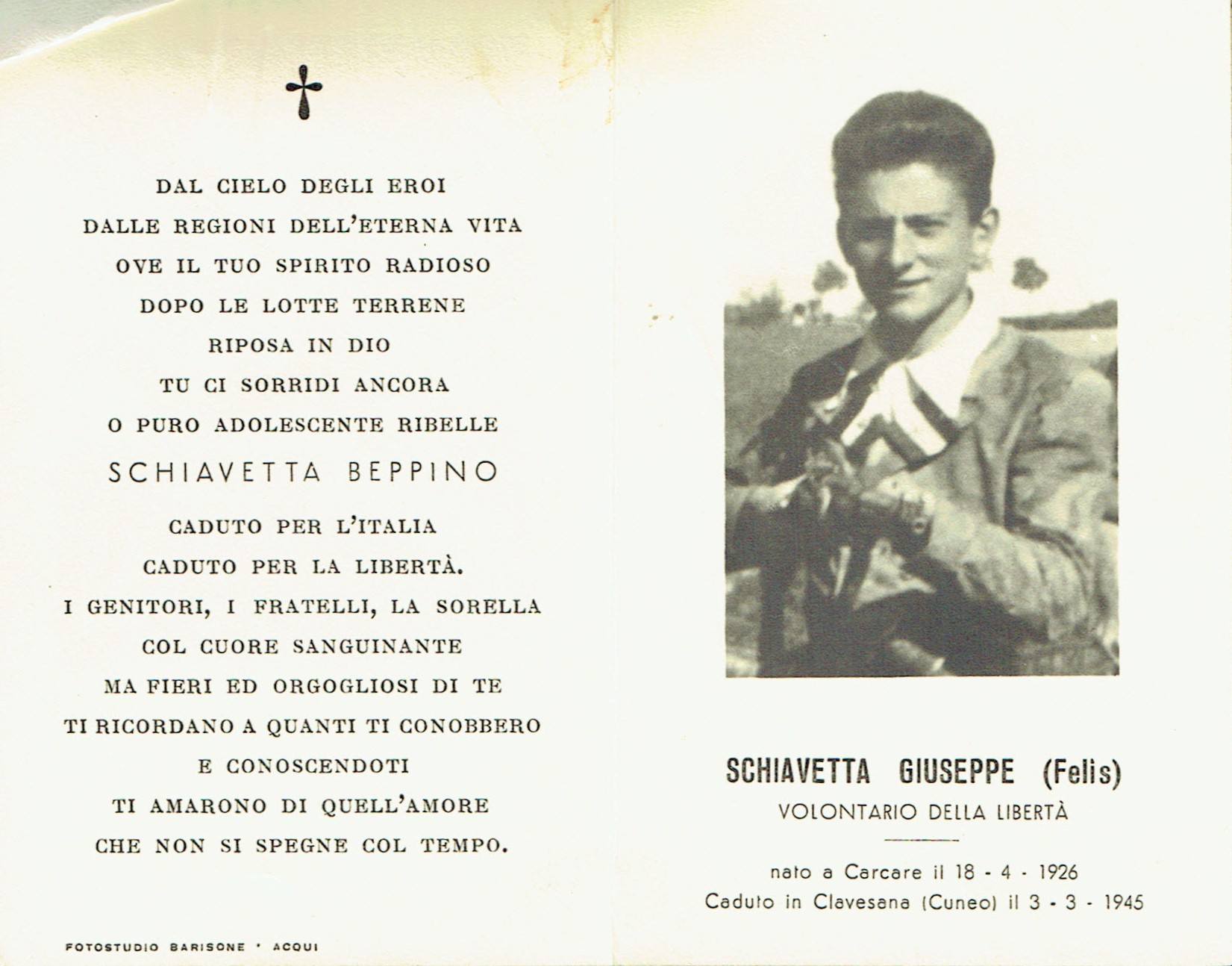 Ricordo funebre di Giuseppe Schiavetta. Isacem, Giac, b. 776, fasc. Scaccabarozzi-Smiderle