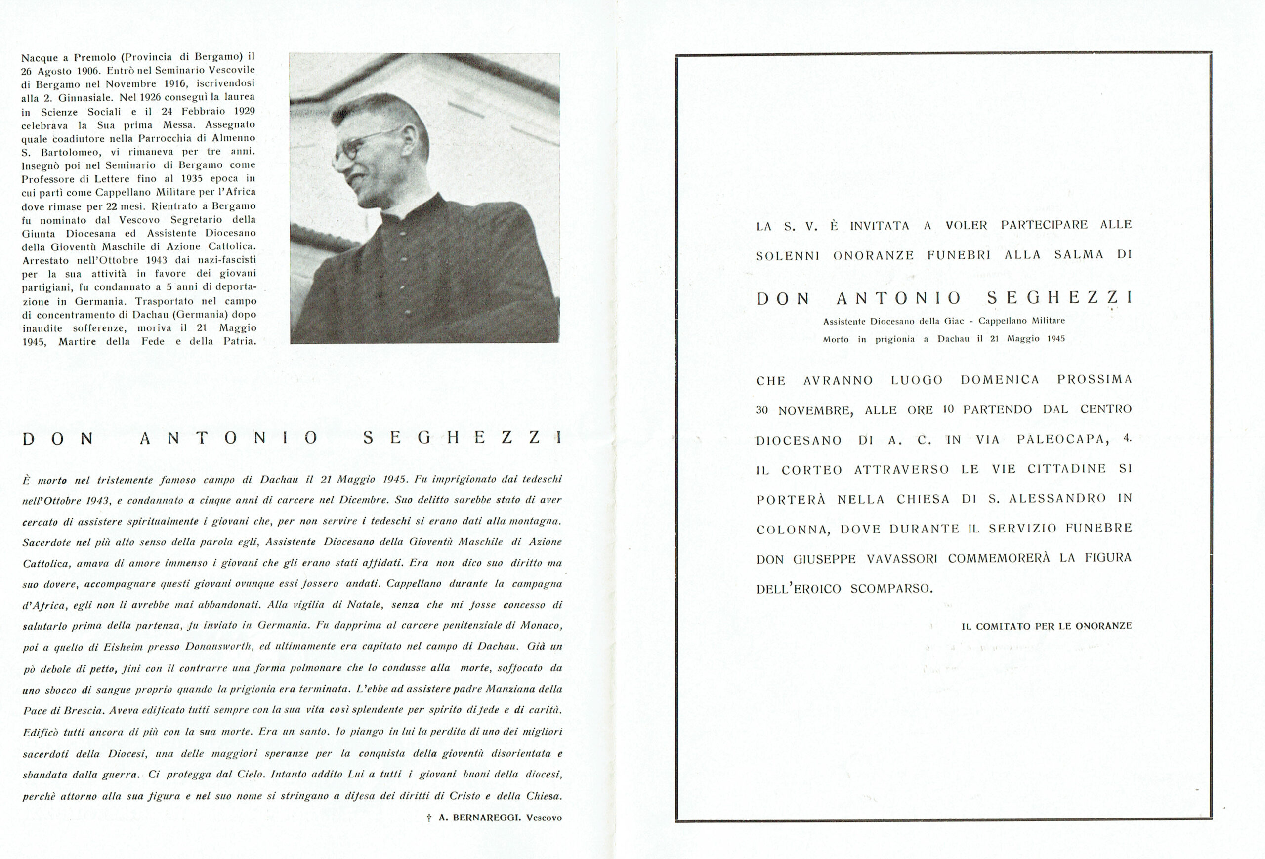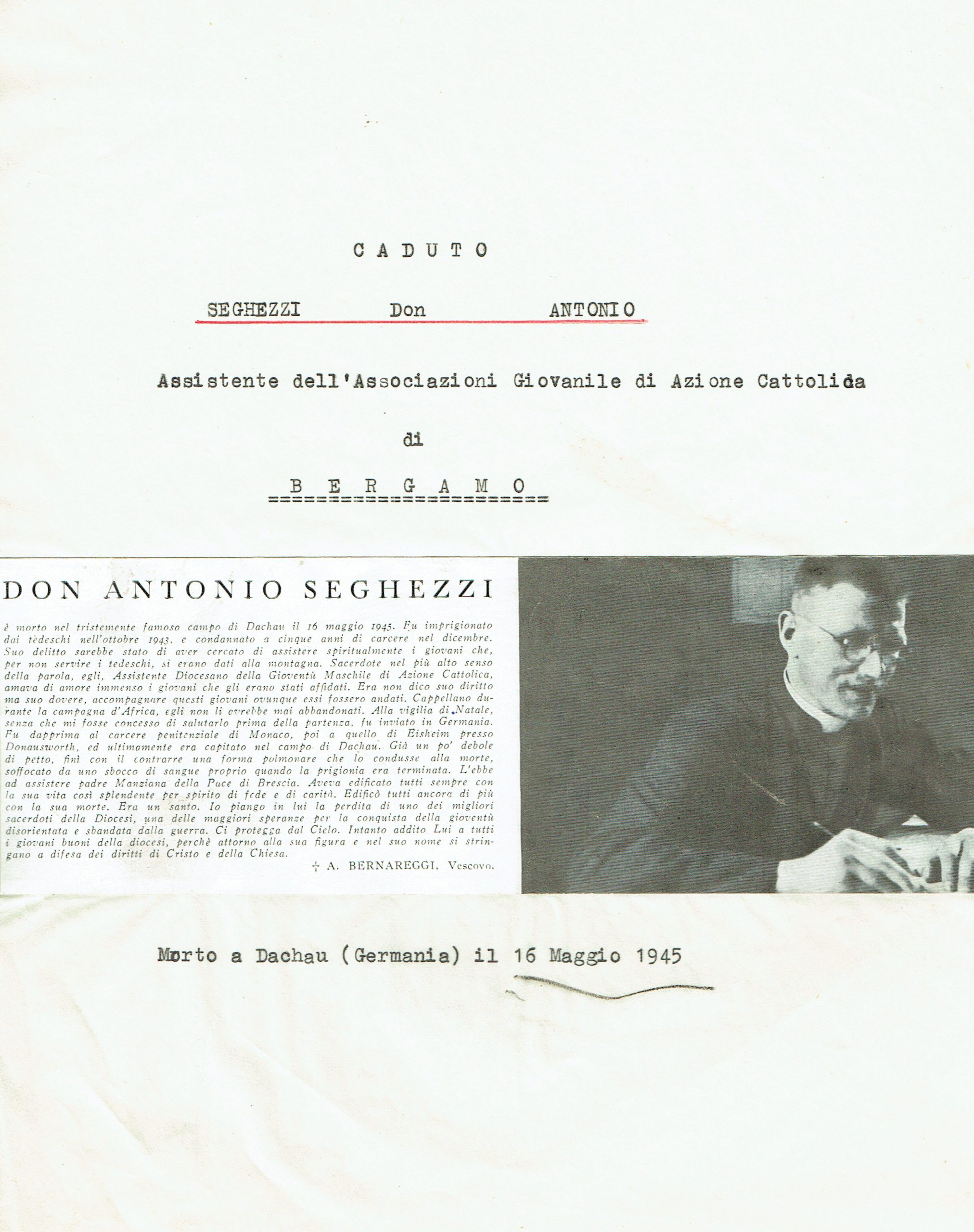 Ricordo di don Antonio Seghezzi. Isacem, Giac, b. 776, fasc. Scaccabarozzi-Smiderle