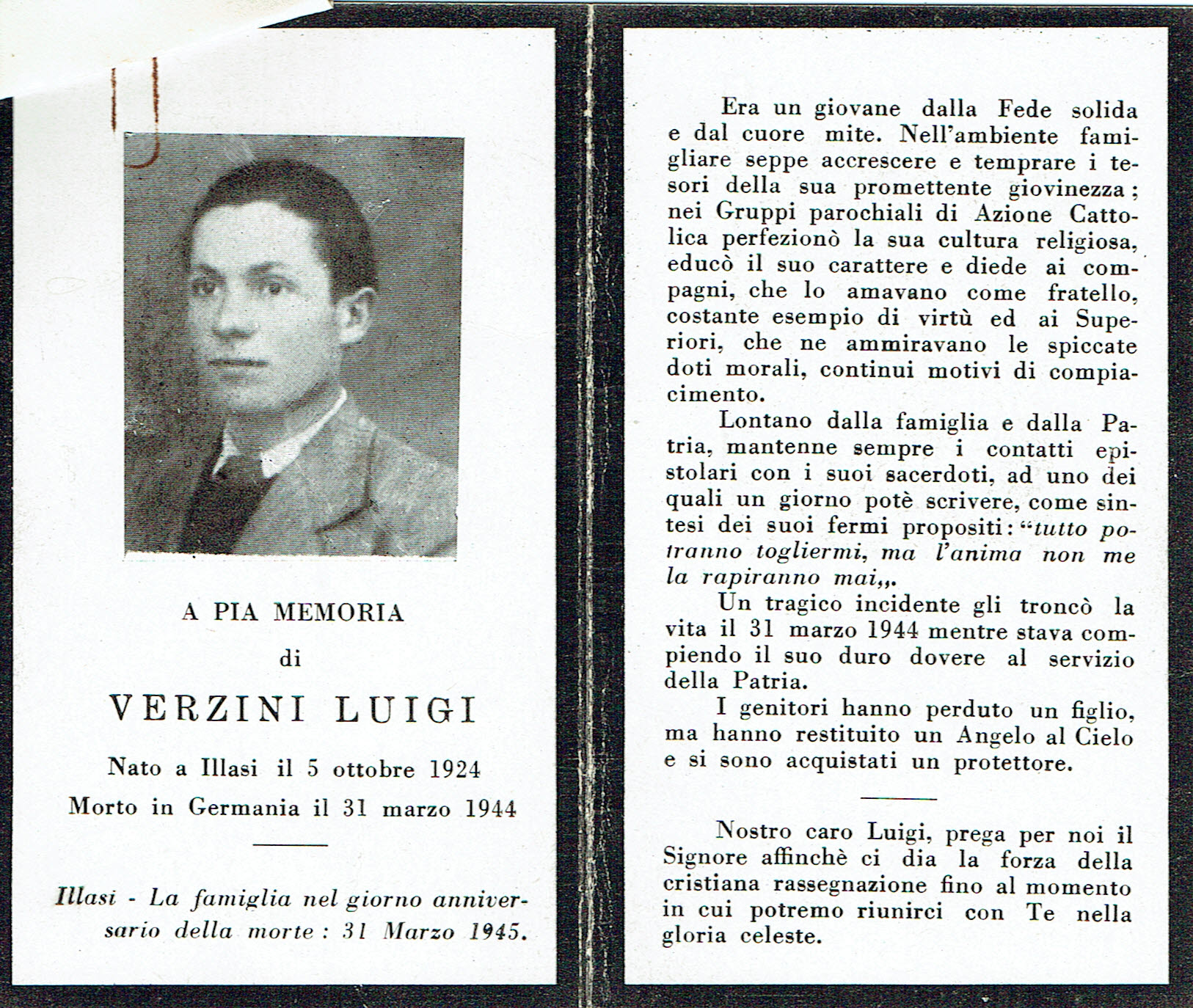 Ricordo funebre di Luigi Verzini. Isacem, Giac, b. 776, fasc. Verardo-Vuano