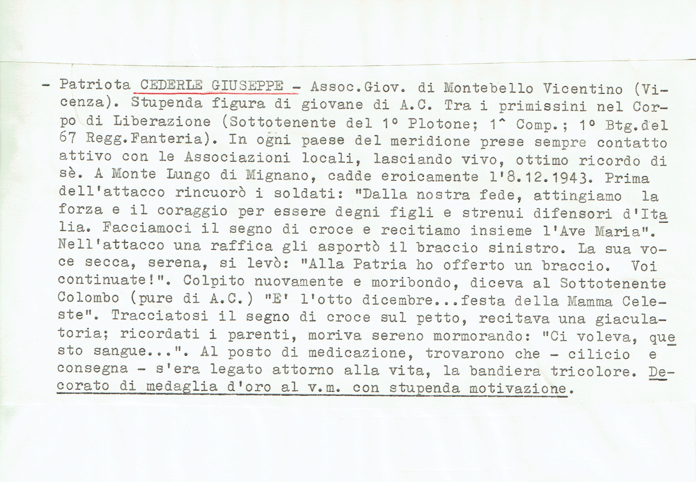 Raccolta informazioni dalle diocesi per la compilazione dell'albo di gloria dei caduti di Ac nella Resistenza. Isacem, Giac, b. 773, fasc. Cattapan-Christallin